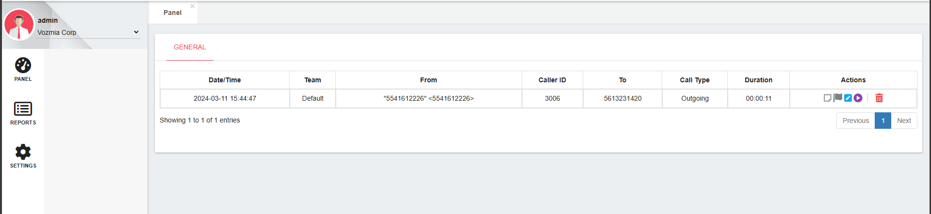 En el Panel principal, el Agente puede observar sus últimas llamadas, el Supervisor puede ver las últimas llamadas de su Equipo y el Administrador las últimas llamadas del sistema. También es posible administrar Flag, Reference y Note, así como escuchar la grabación. Solo el Supervisor o Administrador puede calificar la llamada.